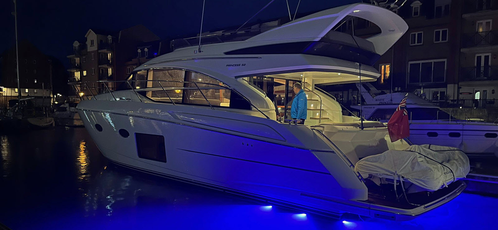 A charter trip on our beautiful Princess F52 Fly Bridge Motor Yacht is the perfect way to celebrate a special occasion in style regardless of the weather. ‘Leading Lady of Lymington’ features full air conditioning and a Seakeeper gyroscopic stabiliser system to dramatically reduce any rock and roll.
